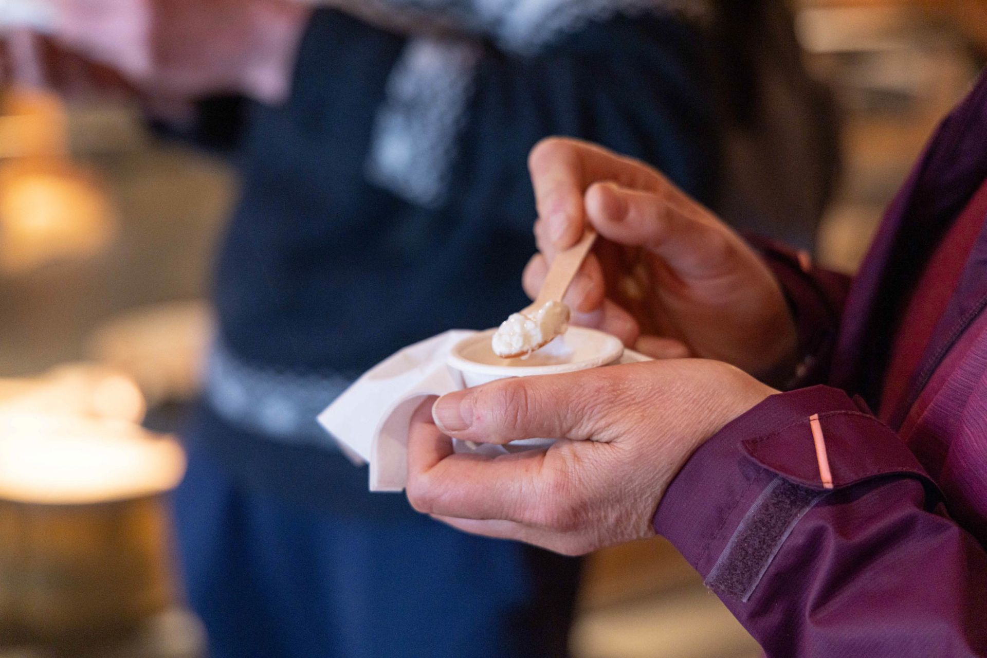 Nach der Vorführung können Sie unsere Milchspezialitäten zusammen mit einem Glas Wein oder Sirup aus dem Tal verkosten.